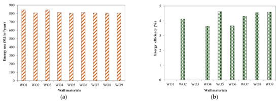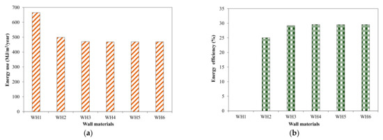 Effect of wall materials on energy use in tested house building. (a) Energy use; (b) Efficiency.