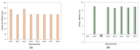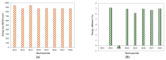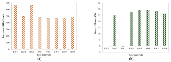 Effect of roof materials on energy use in tested house building. (a) Energy use; (b) Efficiency.