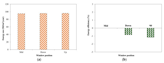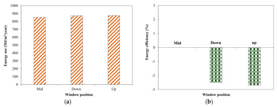 Effect of window position on energy use in tested house building. (a) Energy use; (b) Efficiency.