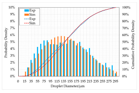 Comparison of droplet size distributions between the simulation and experiment.