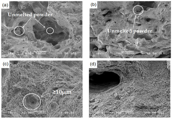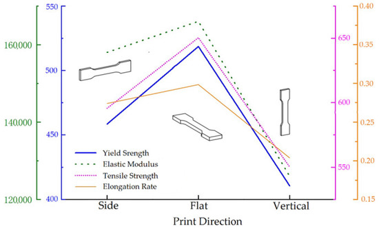 - Under electron microscopy observation, there were more dimples and second-phase particles at the fracture of the sample stretched along the printing direction, which may have been due to incomplete powder melting caused by the interval of scanning speed between layers.