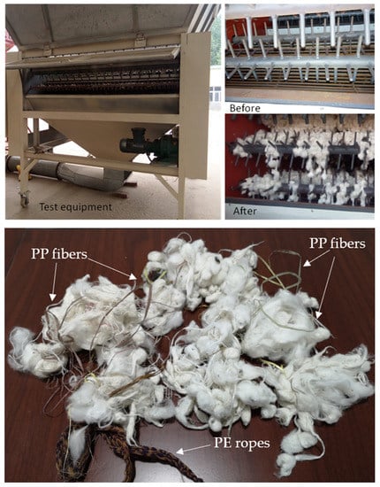 Many existing investigations have indicated that the contaminated contents of machine-harvested cotton in Xinjiang province, China, account for 8% to 27% of the total content [3]. In practice, long foreign matters (LFM) such as long hair, binding ropes, plastic films, chemical fibers, polypropylene, and twines inevitably become mixed into the cotton during the planting, picking, and treatment processes. This greatly deteriorates the quality of the textile and decreases the monetary value of cotton products. Moreover, the price of hand-cleaned cotton is higher (about $USD 120/ton) than UN-cleaned under standard commercial conditions. In this case, cotton processing enterprises have to hire many people to clean the contaminants, which in turn intensifies the economic burden [4,5]. Furthermore, all Chinese cotton enterprises are facing critical challenges in the international cotton market.