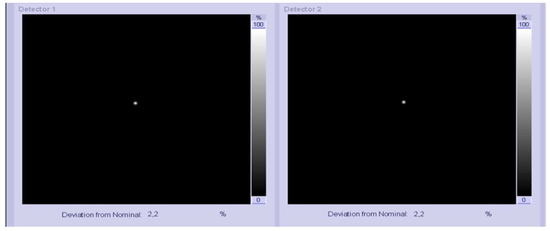 Figure 5 shows planar images of the 57Co point source. The experimental difference between nominal and measured average activity resulted to be within 3%, in good agreement with the manufacturer indications.