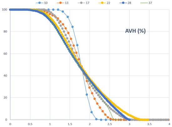 The AVHs of NEMA/IEC phantom for the 6 ROIs obtained by segmentation of the physical volume of each spherical insert are reported in Figure 10. The spill-in and spill-out phenomena are comparable for spherical insert of diameter larger than or equal to 22 mm.