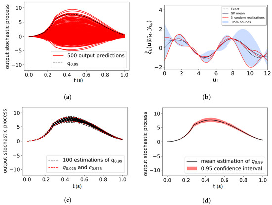 combining KL decomposition and Gaussian processes. It is possible to use this surrogate model to carry out uncertainty quantification studies instead of the exact computationally intensive function . For instance, it is possible to estimate an -quantile over the stochastic process surrogate model defined by: