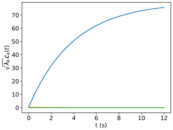 The eigenvalues and eigenfunctions involved in KL expansion may be determined by solving the second kind Fredholm equation. A Galerkin-type technique [19,23,24] may be used for such purpose. Considering a basis of the Hilbert space , each eigenfunction may be expressed in this basis: