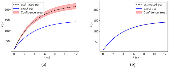 Estimation of the quantile and its confidence area before refinement (a) and after 10 active-learning iterations (b).