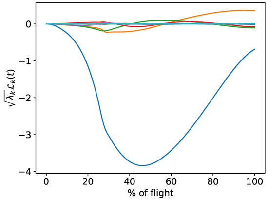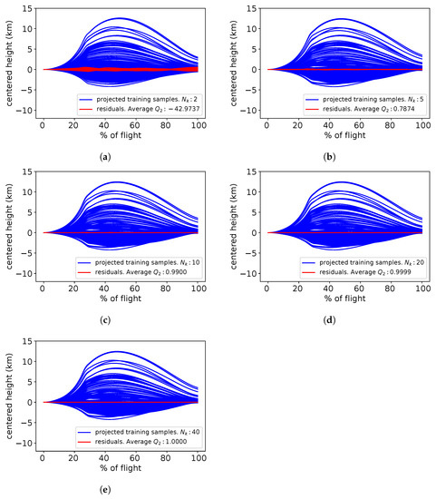 Using the validation samples, it is possible to determine the residual samples as illustrated in red in Figure 15. The centered altitude samples are represented in blue. From Figure 15, it seems that with 2 modes in KL expansion, the obtained residual samples are non negligible meaning that the KL decomposition is not accurate enough. However, the increase of the number of modes leads to residual samples that becomes negligible validating the KL expansion accuracy.