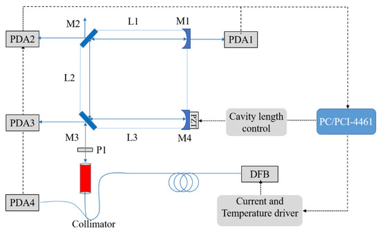 - Pei, S. The Study of cavity enhanced absorption spectroscopy and application. Chin. Acad. Sci. 2005, 36, 92–94. [Google Scholar]
