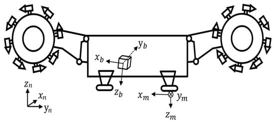 Reference coordinate system (N system): This system is equivalent to the local horizontal coordinate system in this paper. The origin of the N system is located in the measured center of the inertial measurement unit. The x-axis direction is north, the y-axis direction is east, and the z-axis direction is perpendicular to the plane formed by the other two axes and points upward.