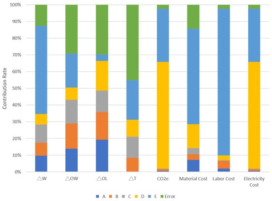 The following supporting information can be downloaded at: https://www.mdpi.com/article/10.3390/app121910060/s1, Table S1: Analysis of variance—△W; Table S2: Analysis of variance—△OW; Table S3: Analysis of variance—△OL; Table S4: Analysis of variance—△T; Table S5: Analysis of variance—CO2e; Table S6: Analysis of variance—material cost; Table S7: Analysis of variance—labor cost; Table S8: Analysis of variance—electricity cost.
