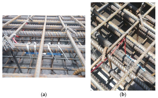 Field sensor layout: (a) Site map of the arrangement of strain sensors on the roof of the arch ring; (b) Site map of the arrangement of strain sensors on the arch ring floor.
