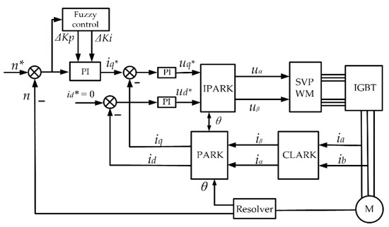 In the traditional vector control, the current loop is set as the inner loop, and the speed loop is set as the outer loop. Meanwhile, the traditional PI regulator is used to de-sign the current loop and the speed loop. Since the controllability of the positive flow system is closely related to the motor operating performance which directly affects the speed regulation performance of the positive flow system. Improving the responsiveness and robustness of the electric motor speed output is very vital for the positive flow system. Therefore, the vector control strategy scheme based on online tuning of speed PI parameters shown in Figure 3 is proposed by adopting fuzzy PI to observe the speed.