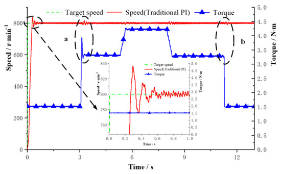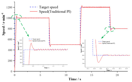 Speed change curve of traditional PI under constant speed loading.