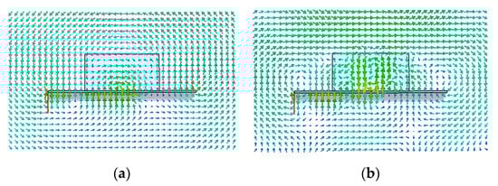 Electric field distributions on the x-z plane: (a) 2.45 GHz; (b) 5.8 GHz.