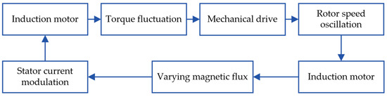 Dynamic loads are inevitable in machining and are also applied to spindle motors during machine tool operation, in addition to static loads. As shown in Figure 1, several nonlinear vibrations cause torque and speed fluctuations during machining, which alters the motor’s flux behaviours. This results in a change in the frequency modulation of the stator current. Thus, motor current signal analysis is mainly based on the frequency characteristics caused by changes in the machining conditions. To extract signal characteristics and represent the operating state of a lathe, Liu et al. [9] applied wavelet transformation and FFT to the total current load signal of the lathe. According to Kuntolu et al. [10], the current signal can effectively predict the wear of machining tools. As demonstrated by Stavropoulos et al. [11], the relationship between the current signal and tool wear is less affected by environmental noise than that between tool wear and acceleration indices. To monitor machining conditions, Zou et al. [12] used the modulation signal bispectrum (MSB) method to extract the frequency amplitude and phase of interest as eigenvalues corresponding to tool wear and machining parameters.