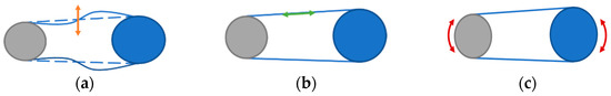 Belt transmission systems are commonly used as an effective power transmission method for transferring motion between the remote axes on CNC machines [13]. Through the belt, the motor transmits power to the lathe spindle, providing advantages such as easy maintenance and flexible arrangement [14,15]. With the advent of high-speed drive systems for machine tools, belt drives inevitably introduce unnecessary nonlinear vibrations, such as transverse, longitudinal, and rotational vibrations under high dynamic loads (as shown in Figure 2), resulting in inaccurate monitoring of the machining conditions.