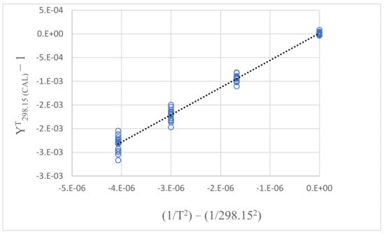 where is = 1 for T = 298.15 K. Regression (9) could exhibit an intercept a numerically different from zero, but, in any case, with very high probability for a = 0. We calculated a total of the 15 regressions