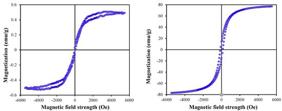 | Material | Saturation Magnetisation (Ms, emu/g) | Remnant Magnetisation (Mr, emu/g) | Coercive Field (Hc, Oe) |