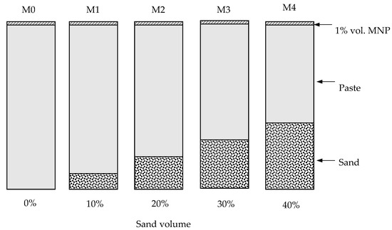 Effect of Volume Fraction of Fine Sand on Magnetorheological Response and Blocking Mechanisms of Cementitious Mixtures Containing Fe3O4 Nanoparticles