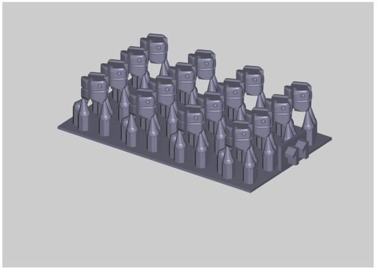 For both printers, the various samples and supports were digitally designed and positioned on the printing plate as per Figure 1. The resins used to print the brackets were the following: