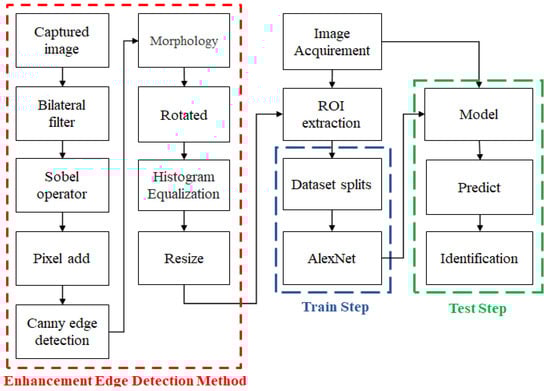 Contactless options have become popular during the COVID-19 pandemic, so these devices capture more noise signals, which complicates image processing. Depending on the time of image capture, contactless biometrics are susceptible to rotation and translation of fingers, so a series of algorithms [,] are required to ensure that images that extracted using biometrics are sufficiently clear for analysis. The components of the algorithm for the proposed enhancement edge detection method are detailed in the next section.