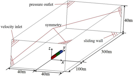 The three-dimensional parametric model described in Section 3.1 is used to set up a train model with three cars. The computational domain as well as the boundary conditions is shown in Figure 3. The front of the computational domain is set as velocity inlet boundary, and the rear is set as pressure outlet boundary. The two sides and top of the domain are set as symmetry boundaries. The bottom of the domain is set as sliding wall boundary, and the train is set as the stationary wall. The train speed in the present paper is 300 km/h. Thus, the flow around the train is considered as in-compressible steady flow. The commercial software Fluent is used to simulate the flow field of the train, the standard k-ε turbulence model is used to resolve the turbulent flow, and the standard wall function is used to resolve the boundary layer.