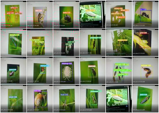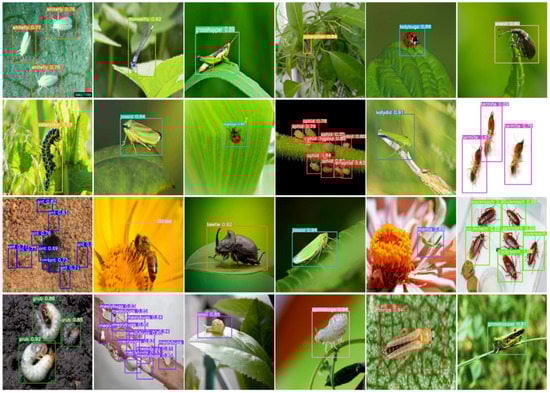 To better illustrate the results of our experiments, we randomly chose images from the test set. The YOLOv5x has good recognition performance for the different categories of insect pests because the convolutional neural network algorithm does not require manual feature extraction and improves generalization ability (Figure 11).