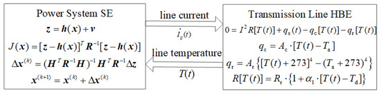 Therefore, the main contributions of this paper are three-fold. Firstly, an ETC-SE model integrating the HBE and WLS-SE is established to consider the impact of line temperature on power system states. Secondly, the AJ-ETC-SE approach is proposed to simultaneously solve the problems of SE and temperature estimation through an augmented Jacobian matrix. Finally, the ITS-ETC-SE approach is proposed to accelerate the solving process, in which the SE and temperature estimation are decoupled and solved via alternate iteration.
