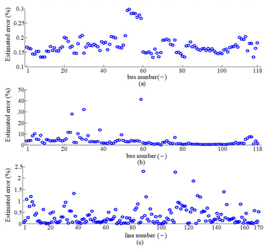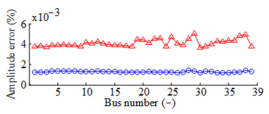 Table 2 shows the RMS and maximum estimated errors of the 10,000 samples with different methods. The errors of the proposed ETC-SE approaches are almost the same and smaller than the errors of the WLS-SE method, whose voltage amplitude and phase angle errors are merely 0.13% and 6.18%, respectively. In addition, the averaged voltage errors of the IEEE 39-bus system with the proposed ITS-ETC-SE approach and WLS-SE method can be depicted in