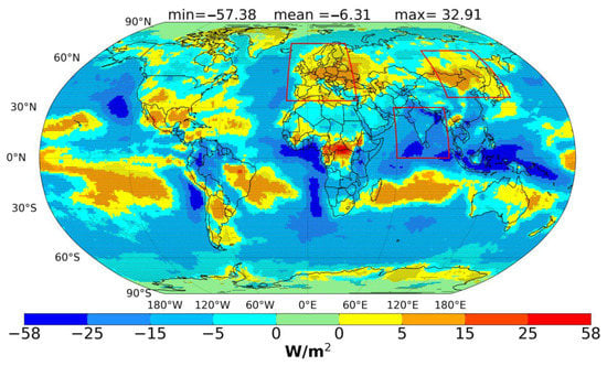 - Hinkelman, L.M. The Global Radiative Energy Budget in MERRA and MERRA-2: Evaluation with Respect to CERES EBAF Data. J. Clim. 2019, 32, 1973–1994. [Google Scholar] [CrossRef]