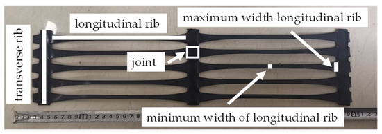 - Chen, R.; Hao, D.X.; Luan, M.T.; Zhao, W. Reinforcement Mechanism of Transverse and Longitudinal Geogrid Ribs. J. Build. Materials. 2013, 16, 544–548. [Google Scholar] [CrossRef]
