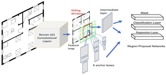 The overview of Mask R-CNN [] framework with ResNet-101 [] backbone for floor-plan object detection.
