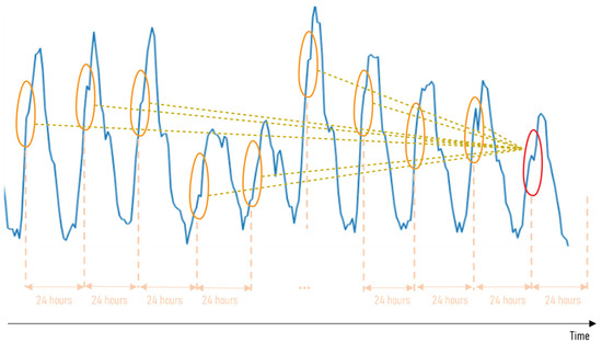 The study focused on energy consumption and was tested on three datasets related to energy consumption. The data analysis found that the energy consumption data are seasonal (Figure 2). If we break down the time series into small components based on that period and compare them, we observe the similarity in the shape of the time series. Therefore, the information in the same positions in the periods has a strong relationship and supports making predictions for the next periods.