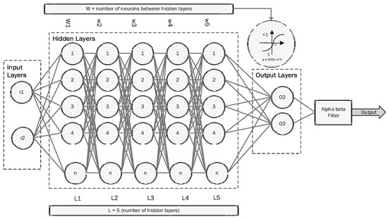 The author of Reference [28] proposed a new accuracy-improvement-based methodology for the alpha-beta filter. They developed a method based on ANN learning in prediction methods for indoor navigation systems to enhance the precision of the alpha-beta filter by reducing the error. The ANN [29] is also the most widely used algorithm.