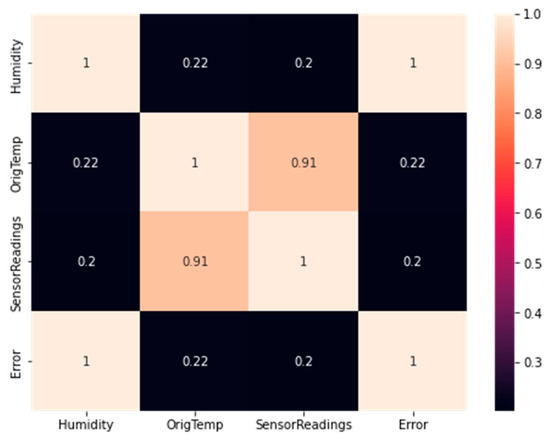The overall performance of the proposed approach was comprehensively assessed by using two deterministic performance metrics, i.e., RMSE and mean absolute error, and a heatmap representation of the correlation between the training and testing datasets was created as shown in Figure 7.