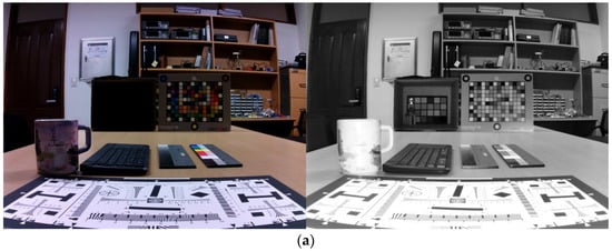 Figure 11 shows the sequence of NIR and visible image switching capturing at night. The input image was acquired as a visible-light image and a broadband image. A broadband image refers to an image in which visible-light and near-infrared images are combined, and because the color channel of the broadband image is not used in this study, it is used synonymously with the near-infrared image.