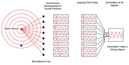 - Dougherty, R.P. Beamforming in acoustic testing. In Aeroacoustic Measurements; Springer: Berlin/Heidelberg, Germany, 2002; pp. 62–97. [Google Scholar]