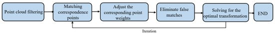 If the average distance is less than the preset threshold or the number of iterations is greater than the preset maximum number of iterations , leave the loop and stop the iterations; otherwise, return to recalculate the transformation matrix until the convergence requirements are met. The standard flow of ICP registration is shown in Figure 2.
