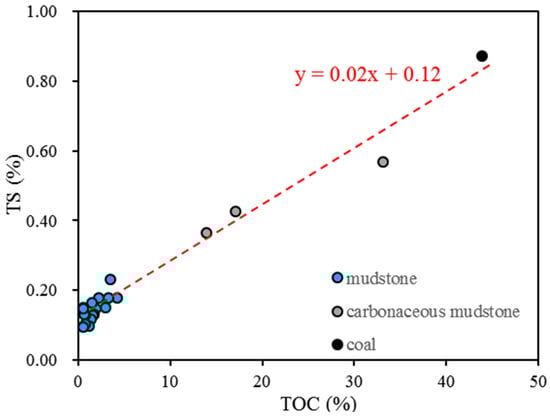Relationship between TS and TOC for coal-measure source rock.