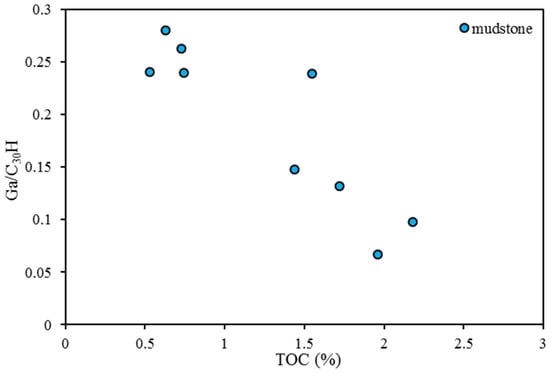 Relationship between Ga/C30H and TOC for coal-measure source rocks.