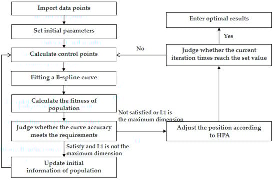 The rest of the paper is organized as follows. Section 2 introduces the basic B-spline theory used in HPA algorithm and research on existing B-spline curve fitting. Section 3 proposes the HPA method, including a new knot guidance technology, a hungry predation optimization technology, fitness function selection and the dimension calculation rule. Section 4 analyzes the influence of population size, iteration number and error threshold of HPA on curve fitting results, and an adaptive adjustment method of initial input parameters is proposed. Section 5 verifies the performance of HPA algorithm; we verify the superior performance of HPA algorithm in fitting accuracy and convergence speed by comparing with typical static knot method, dynamic knot method and engineering commercial software. Finally, we summarize this paper and look forward to future research directions.