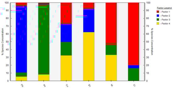 The main loading elements of factor 4 were Zn, Ni, and Cu. The contribution rates of factor 4 for Zn, Ni, and Cu were 62.2%, 33.1%, and 32.5%, respectively, followed by 8.1% for As and 5.4% for Pb. Lima River flows through the study area from north to south (Figure 1). A large amount of wastewater containing Zn, Ni, Cu, As, and Pb was produced near the non-ferrous metal slag field and discharged into the Lima River. Under the influence of the dry-hot valley, soil erosion is serious, and soil heavy metals are easily accumulated in the lower reaches of the Lima River. Field investigation showed that the farmland near the Lima River has been irrigated with sewage from the Lima River for many years. The areas with high pollution of Zn, Ni, Cr, and As are close to the Lima River (Figure 2), particularly in the lower reaches of Lima River. Therefore, it is speculated that the significant enrichment of heavy metals could be due to the river alluvial fan. The trace heavy metal elements carried by the river sediment are deposited with the sediment, resulting in the accumulation of these trace elements in the alluvial fan soil. Numerous studies have shown that agricultural soils are seriously contaminated by Zn due to long-term sewage irrigation or sludge application. Therefore, factor 4 can be defined as an industrial river water [,].