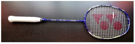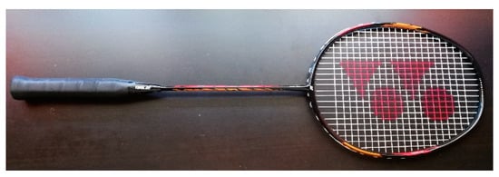 The Yonex Duora 33 (Figure 2) is a low-range racket that is usually used by less experienced players and is more flexible than the Yonex Duora 88 (Figure 3), which is a mid-range racket. The principal difference between these two rackets is the racket flex. According to Phomsoupha et al., this racket type has more stiffness, and is therefore more normally used by athletes of an advanced level. We used the SnowPeak C1101 shuttlecocks for this study, which have been approved by the Badminton World Federation for international tournaments []. The feathers of the C1101 are Class A synthetic, and the shuttle head is made of natural cork with a weight of approximately 5 g.