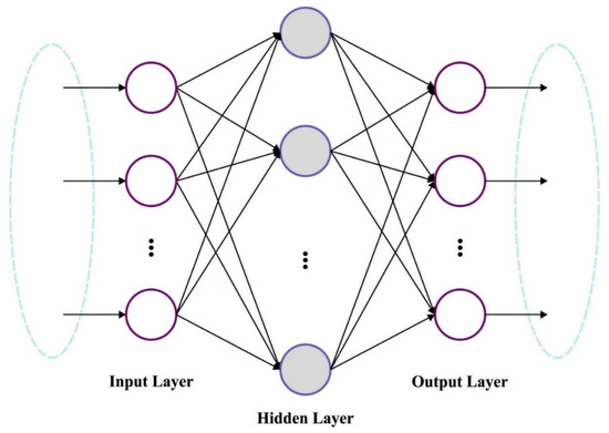 Here, signifies the threshold of the hidden node; signifies the weight linking the output and hidden nodes; shows the weight connecting the input and the hidden node; signifies the input sample of the module; denotes the output sample of models; and characterizes the sample count: