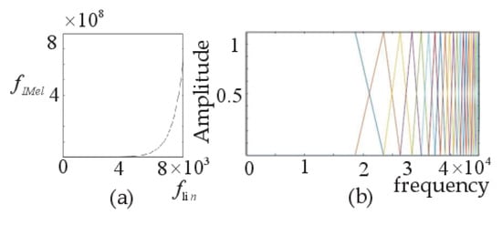 (a) The relationship between flin and fMel. (b) Mel filter banks.
