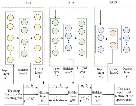 The deep features of the spectrogram obtained by the CNN may be redundant. Therefore, an SSAE is adopted to further optimize the deep features, reduce the number of dimensions, and improve the recognition rate.