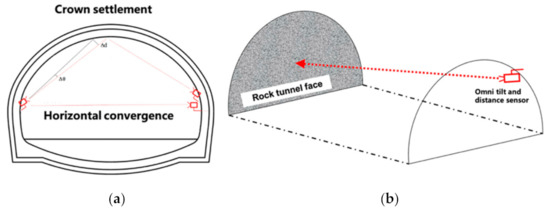 In rock tunnel construction, the lining and face deformations of the surrounding rocks are important indicators for site engineers. A typical monitoring scheme includes the horizontal convergence and the crown settlement of a transverse section in front of the rock tunnel excavation. Based on successful monitoring applications in the metro tunnel maintenance, the Omni WTDSs produced by the WISENMESHNET® were adopted in this study to achieve high-granularity monitoring data.