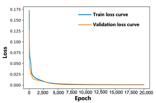 Figure 11. After 20,000 epochs, the transformer model tends to converge, and the loss of the validation set drops to 0.0008. Based on the optimized structure of the transformer model, both LSTM models adopted similar model structures for performance comparison (