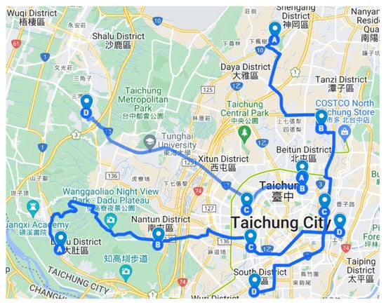 - Thaithatkul, P.; Seo, T.; Kusakabe, T.; Asakura, Y. A passengers matching problem in ridesharing systems by considering user preference. J. East. Asia Soc. Transp. Stud. 2015, 11, 1416–1432. [Google Scholar]